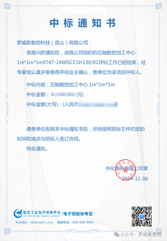 在參與的上海航空發(fā)動機復合材料有限責任公司招標項目中,成功中標五軸數(shù)控加工中心項目。