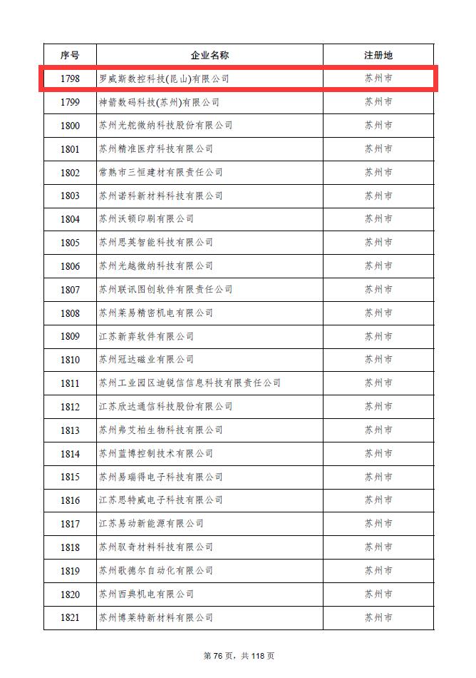 近日羅威斯數(shù)控科技(昆山)有限公司憑借專業(yè)的研發(fā)隊伍、雄厚的技術實力、持續(xù)的創(chuàng)新能力、科學的企業(yè)管理,順利通過江蘇省科學技術廳科技型企業(yè)認定。